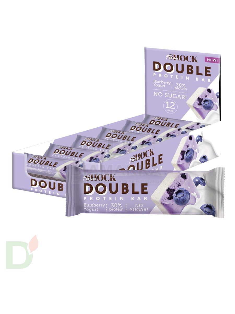<h2>Протеиновые десерты - десерты 21 века</h2> Есть сладкое и при этом без вреда для здоровья? В 21 веке это реальность. Еще несколько лет назад протеиновые десерты считались едой исключительно для спортсменов. Сейчас же их выбирают многие: люди с диабетом, те кто следит за своим здоровьем и питанием, придерживается диеты, хочет снизить потребление сахара<br> <br> Протеиновая вкусняшка - это идеальный перекус после тренировки, на прогулке, в дороге, в школе или на работе и тд. Его удобно брать с собой. Но главное преимущество батончиков и печений на протеине - невероятная сытость! Например, батончика весом в 40 грамм вполне достаточно, чтобы сбить голод на несколько часов.<br> <br> <h3>Вкусные десерты с пользой для здоровья</h3> О какой пользе речь?<br> <ul> <li>продукция богата протеином. Белок - это основной строительный материал для организма. Мы - дети современности - часто не добираем суточную норму белка. Протеиновые сладости способны этот дефицит восполнить</li> <li> в составе нет сахара. Следовательно, отсутствуют свойственные сахару побочные эффекты</li> <li> содержат пищевые волокна, которые необходимы для нормального функционирования ЖКТ</li> </ul> Батончики линейки Double protein bar содержат ВДВОЕ больше протеина. Значит, вдвое больше пользы и дольше чувство сытости. При этом в них снижено содержание жиров, а следовательно и калорий!<br> <br> Вес батончика 40 грамм<br> <h3>Состав батончика Double protein bar Черничный йогурт</h3> Cмесь белков (концентрат молочного белка, концентрат сывороточного белка), полидекстроза (пищевые волокна), вода питьевая, изомальтоолигосахарид (пищевые волокна), черника, масло кокосовое.<br> <br> Содержит менее 2%: глицерин (агент влагоудерживающий), сорбит (агент влагоудерживающий), лимонная кислота (регулятор кислотности), соль гималайская розовая, аскорбиновая кислота (регулятор кислотности), сорбат калия (консервант), соевый лецитин (эмульгатор), ароматизатор натуральный «Черника», ароматизатор натуральный «Ванилин», стевиозид (подсластитель).<br> <h4>Пищевая и энергетическая ценность на 1 батончик</h4> б - 12<br> ж - 1,6<br> у - 3,2<br> пищевые волокна - 15,2<br> 109 ккал