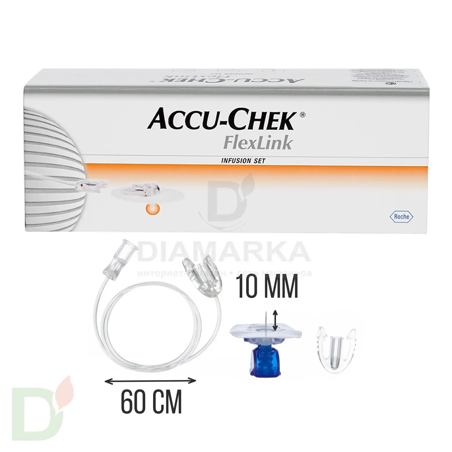 Внимание! На фото представлена упаковка из 10 инфузионок Акку-Чек Флекс-Линк. Цена указана за 1 штуку.