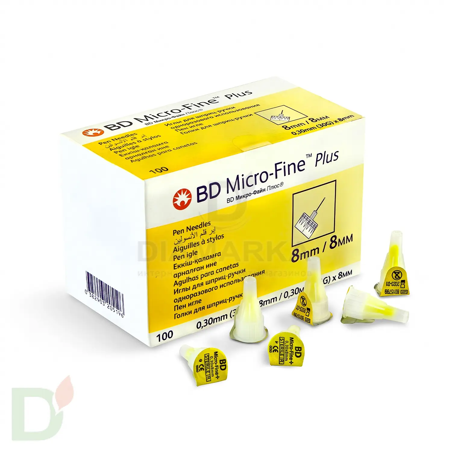 Иглы Микро-Файн Плюс / Micro-Fine Plus 30G для шприц-ручек, длина 8 мм, 100 шт.