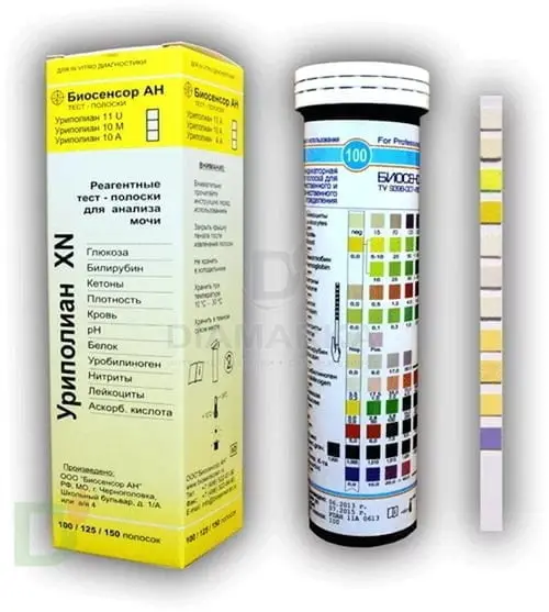 На тест-полоску нанесены специальные реагенты,которые, контактируя с мочой и содержащимися в ней элементами, окрашиваются в различные цвета. Все что вам нужно - собрать мочу, погрузить в нее тест, подождать пару минут и сравнить тест-полоску с тестовой шкалой.