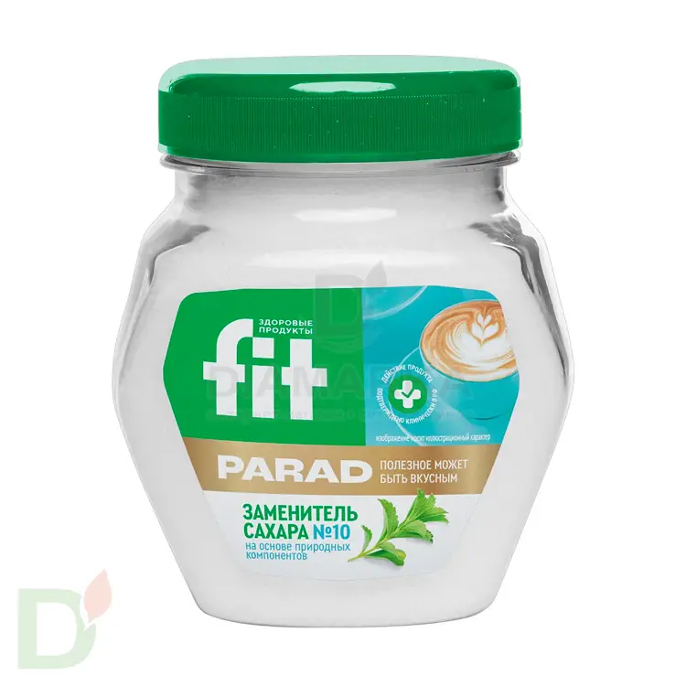 1 г смеси ФитПарад №10 заменяет 5 г сахара, то есть 200 грамм продукта заменяет 1 кг сахара. Смесь подсластителей ФитПарад №1 может использоваться в производстве продуктов для больных сахарным диабетом, а также для целевой группы потребителей, следящих за своим весом.