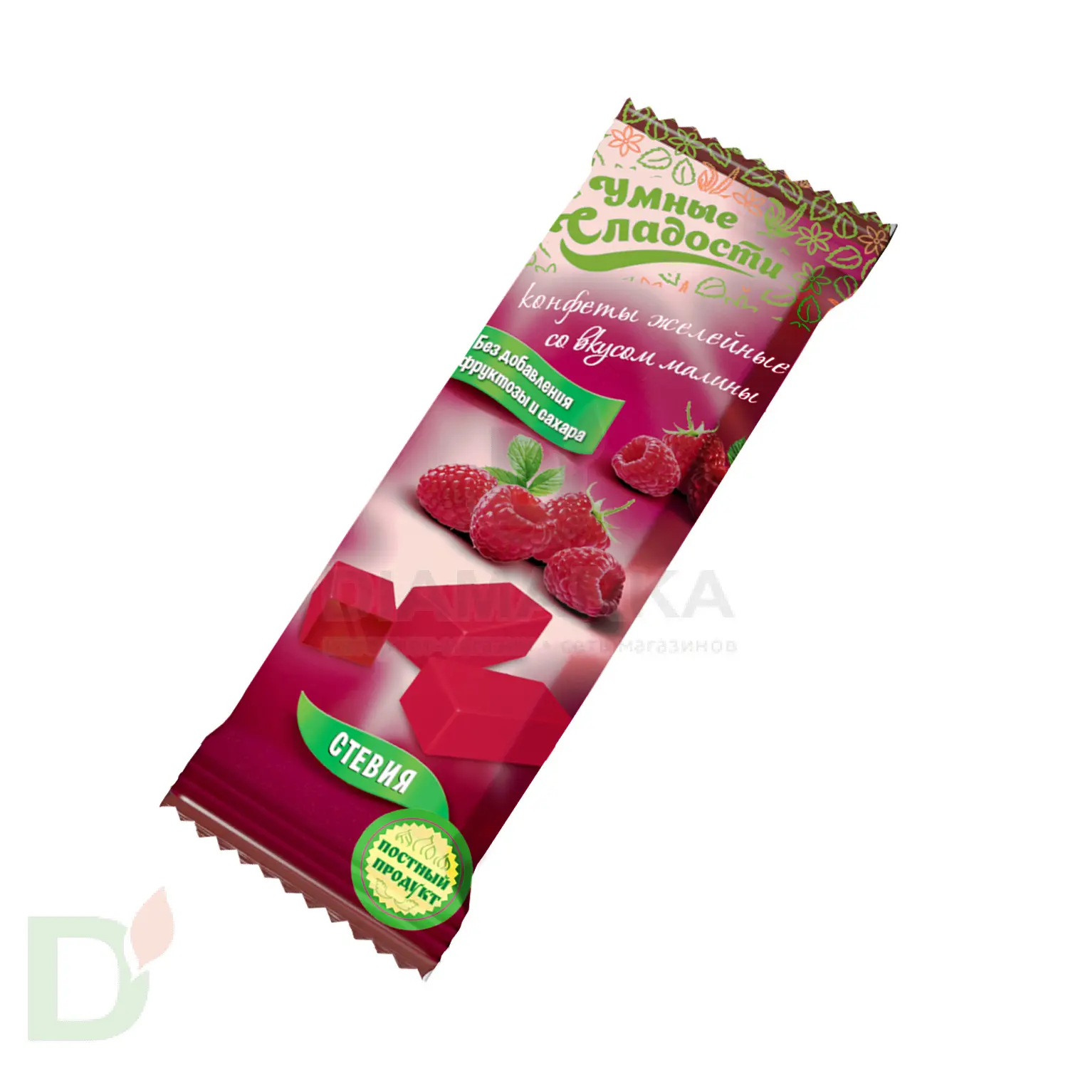 <h2>Правильные конфеты для правильных чаепитий</h2> Конфеты = сладость = много сахара. Такая установка сидит в голове у большинства людей. Хорошо, что мы живем в 21 веке и конфеты без сахара и его аналогов - вполне себе реальность, а не мечта!<br> <h2>Преимущества конфет без сахара</h2> <ul> <li>низкая скорость усвоения углеводов</li> <li> меньше калорий (в сравнении с обычными конфетами)</li> <li> не провоцируют развития кариеса</li> <li> ПРИ ЭТОМ по вкусу неотличимы от обычных конфет!</li> </ul> <br> <br> <span style="color: #383838; font-size: 1.866em; font-weight: bold;">Что дает сладость<br> </span><br> Как было сказано выше, умные сладости не содержат сахара и его углеводных заменителей. Вместо них используются изомальт и стевия - природные низкокалорийные заменители, которые не оказывают на организм столь вредного воздействия, как сахар и аналоги.<br> <br> Масса: 90 грамм<br> <br> Срок годности 4 месяца<br> <h2>Состав конфет Малина</h2> патока, изомальт, загуститель-пектин, регулятор кислотности-кислота лимонная, влагоудерживающий агент-лактат натрия, ароматизатор «Малина», краситель пищевой, подсластитель-стевия.<br> <h2>КБЖУ на 100 грамм конфет</h2> 246 ккал<br> б - 0,4<br> ж - 0<br> у - 63,8